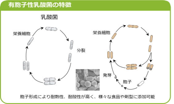 SANK70258は、有胞子性乳酸菌として、生活環の中で胞子(芽胞)を形成するという特徴を有します(イラスト)。