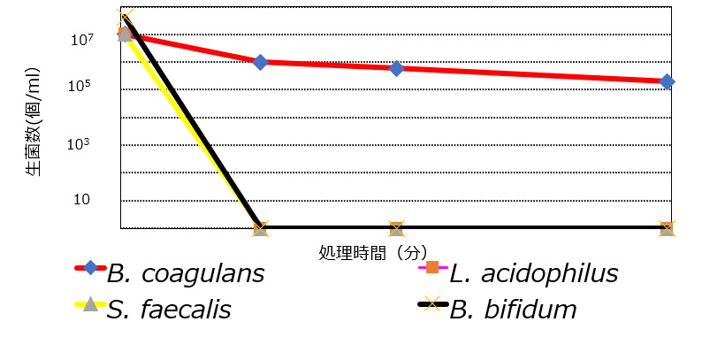 ● 120℃で加熱した際の菌体そのものの耐熱性 ● 人工胃液(pH1.2)における耐酸性