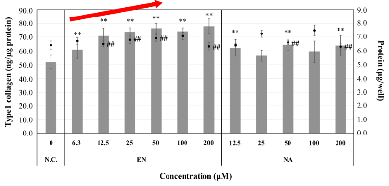 EN increased the synthesis of type I collagen in human dermal fibroblasts (NHDF) in a concentration-dependent manner.