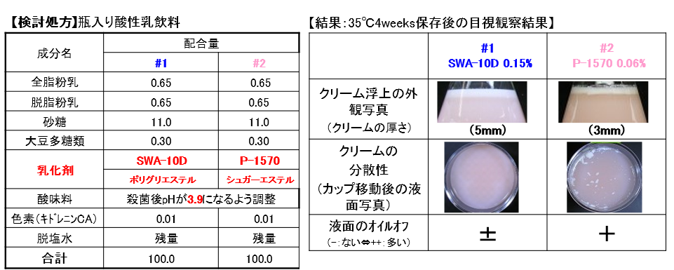 酸性乳飲料におけるポリグリエステルの乳化安定効果