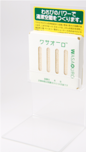 ワサビやカラシのツンとくる香りの成分には、強い防カビ効果や防虫効果があります。ワサオーロ™・カセットは、これらの成分を活用し、食品売り場のショーケースや陳列棚におくだけで、防カビ、防虫効果を発揮します。