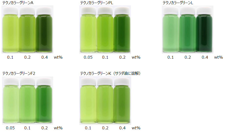 [クチナシ青色素+ベニバナ黄色素] テクノカラーグリーンS/L/A/F2/F3